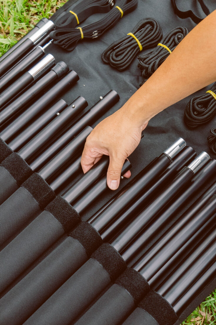 วัสดุ : ผ้าไนลอนริปสต็อป 15D, PU 2000mm/เคลือบซิลิโคน , โครง อลูมิเนียม 7001